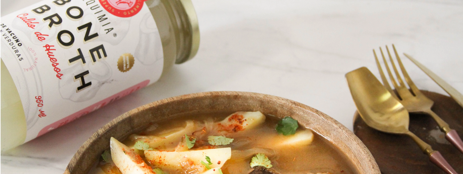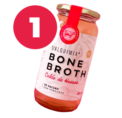 El auténtico caldo de hueso chileno, libre de sellos y 100% natural.
